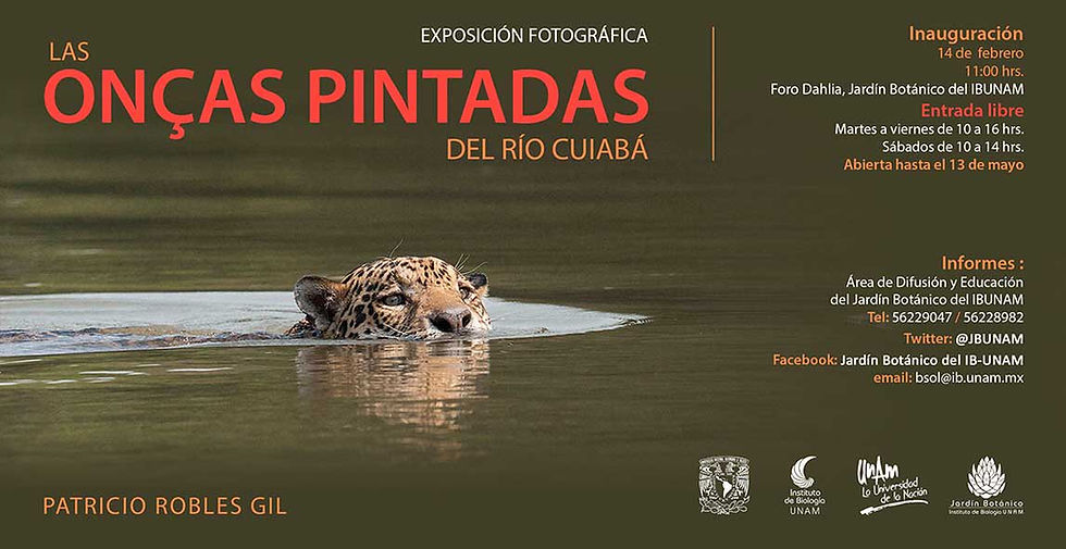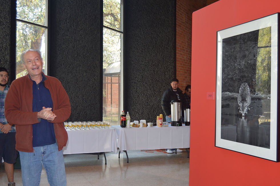 Así comenzó el relato de la fascinante creación fotográfica de Patricio Robles Gil, en la inauguración de la exposición fotográfica “Las Onças Pintadas del Río Cuiabá”, la cual se realiza en la Sala Dahlia, dentro de las instalaciones del Jardín Botánico del Instituto de Biología de la UNAM. En esta no solo se muestra la gran biodiversidad presente en el Río Cuiabá en Brasil, sino que va más allá ofreciendo imágenes del comportamiento natural de los jaguares, algo muy difícil de capturar, ya que es una especie en peligro de extinción.